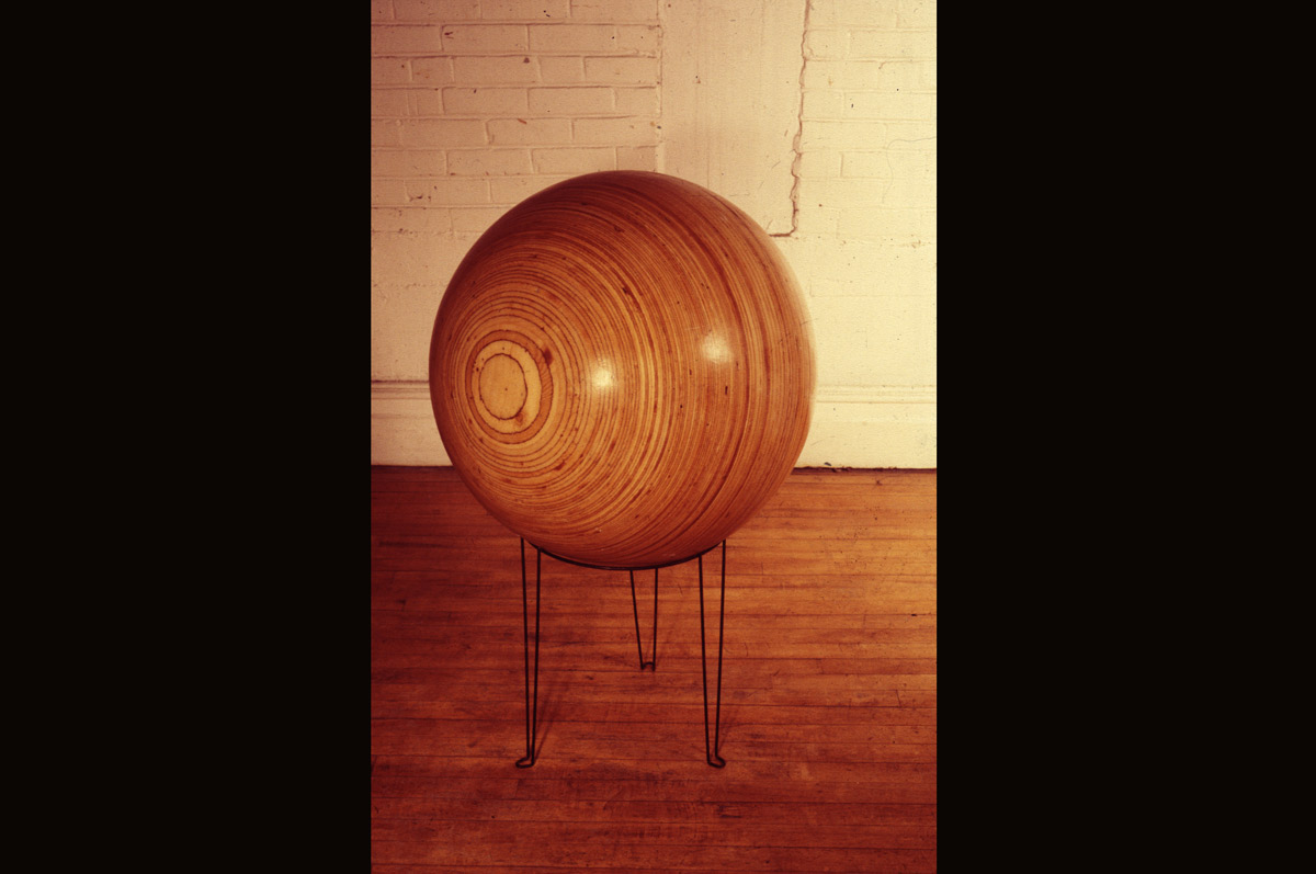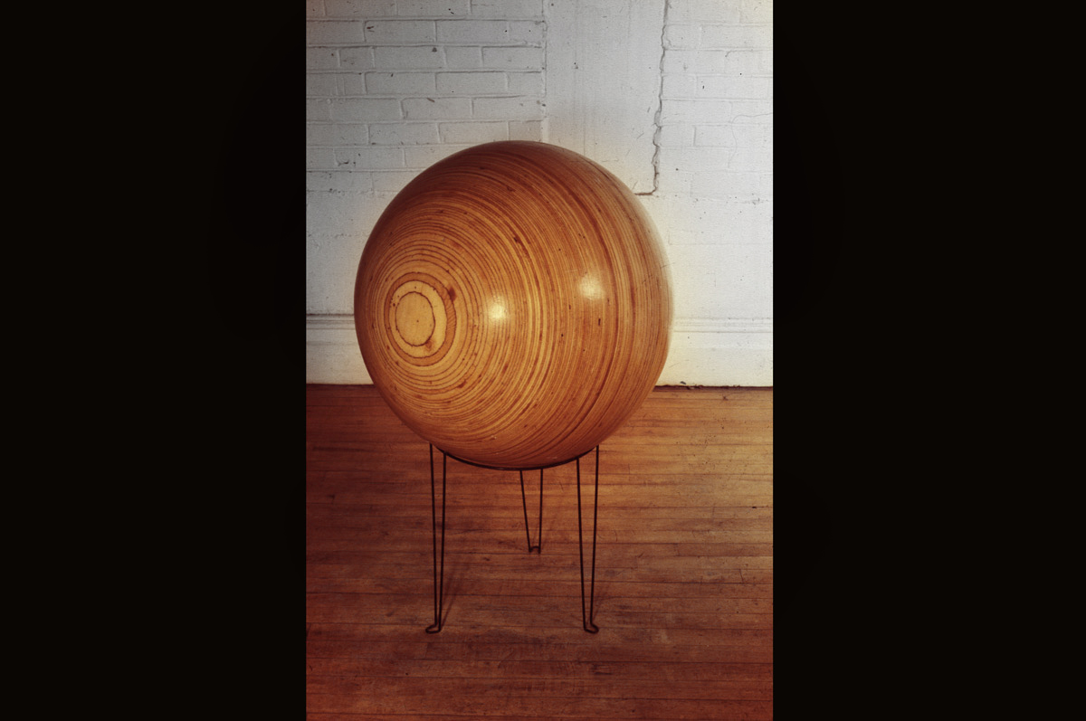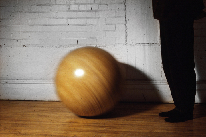 The viewer is presented only with a wooden ball about a metre high; there is no hint of the technology contained within the wooden shell. Upon sensing someone within its perimeter of comfort, the piece acts as a probabilistic automaton, rolling in one of several possible directions away from the approaching viewer. The resultant way in which Untitled Ball engages the viewer in three-dimensional space tries to explore just how reducible the intangibles of human motion and perception can be, and to what degree technology can mediate or interfere with such decidedly human activities.